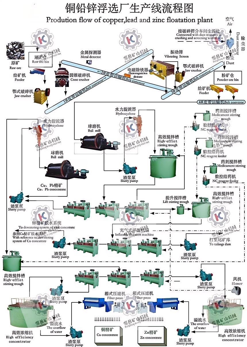 日處理100t/d銅礦選礦工藝設備流程圖 Copper equipment with the capcity of 100t/d for extraction and technics flow chart