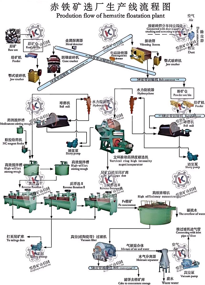 ·日處理5000t/d赤鐵礦工藝設備流程圖 Hematite equ