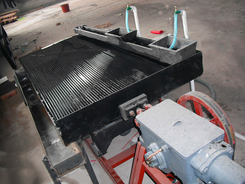 6-S選礦搖床在礦山機械設備中屬重力選礦的關鍵機器設備之首,它運用于分選鎢、錫、鉭鈮和其他有色金屬和貴金屬鐵礦石。也可用以分選鐵、錳礦石和煤。當解決鎢、錫等鐵礦石時,搖床的合理收購粒度分布范疇為。?6-S選礦搖床的冶煉廠全過程是在具備來復條的歪斜床表面開展的,礦粒群從床表面角的給礦槽送進,一起由給不銹鋼水槽供求平衡橫著清洗水,因此礦粒在作用力,橫著水流沖力,床面作往復式不一樣健身運動所造成的慣性力和滑動摩擦力的功效下,按比例和粒度分布層次,并沿床面作豎向健身運動和沿歪斜床面作橫著健身運動。因而,比例和粒度分布不一樣的礦粒順著分別的健身運動方位慢慢由A邊向B邊呈扇型流下來,各自從精礦端和尾礦側的不一樣區排出來,最終被分為精礦,中礦和尾礦。