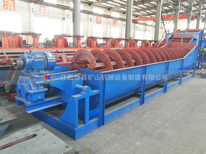 水力分級機經常根據礦粒粒度、形狀和密度的不同用在礦物加工中。雖然水力分級設備種類繁多,但是近些年來,干擾床分級機占據了水力分級設備的主流。傳統的設計是將沖洗水通過水力分級機分級室里一組均勻分布的管道引入到上部敞開的水力分級機容器中。在運行過程中,給料給入水力分級設備的上端,并進行沉降。因此,向上的沖洗水對懸浮顆粒形成了一個流態化的干擾床。床內狹小的空隙使水產生很高的流動速度,從而阻止了低沉降速度顆粒的滲透。